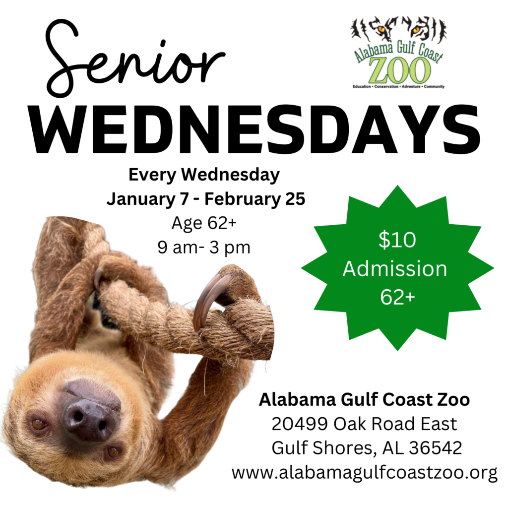 Every Wednesday, from January 7 to February 25, 2026, Senior Adults (age 62 and over) receive regular zoo admission at a discounted price of $10.